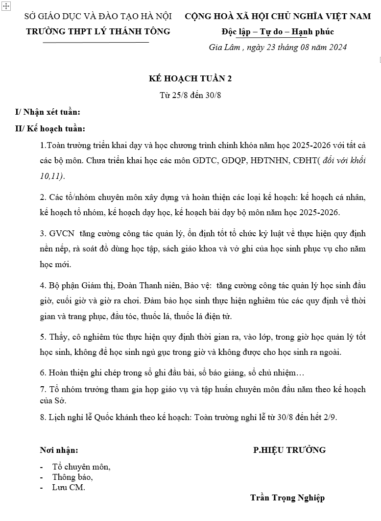 KẾ HOẠCH TUẦN 02 NĂM HỌC 2025-2026