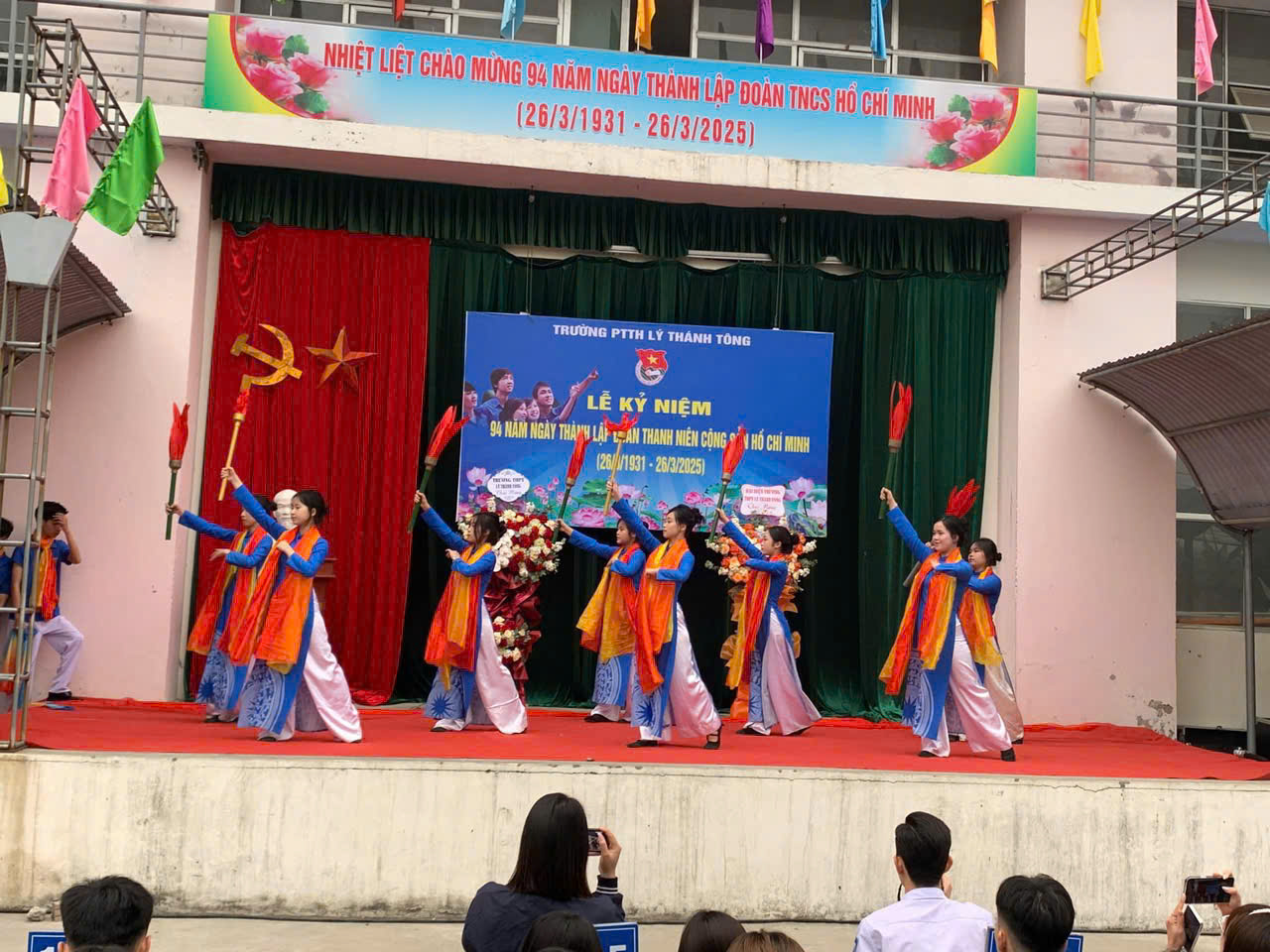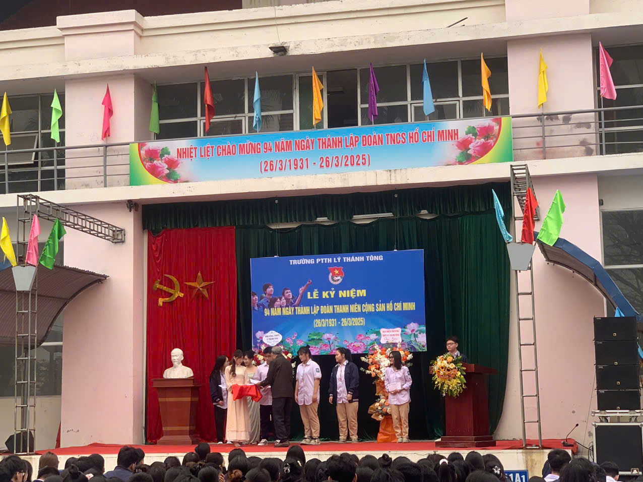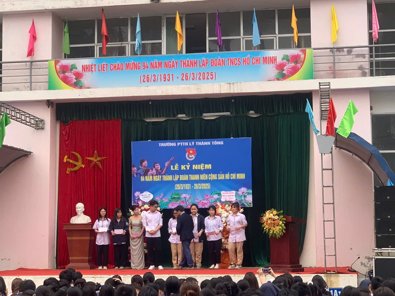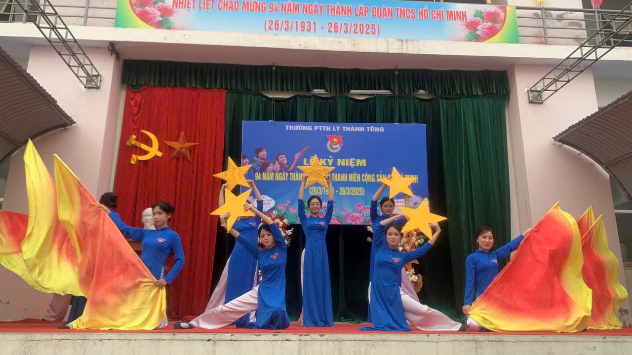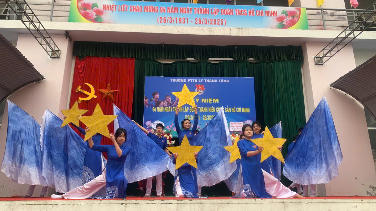 Ngày 26/3 hàng năm là dịp đặc biệt để tuổi trẻ cả nước cùng ôn lại truyền thống vẻ vang của Đoàn TNCS Hồ Chí Minh, tổ chức vinh dự mang sứ mệnh rèn luyện, dẫn dắt thế hệ thanh niên Việt Nam trên con đường cống hiến và trưởng thành. Tháng Ba về, mang theo ngọn lửa nhiệt huyết của tuổi trẻ, khơi dậy trong mỗi chúng ta niềm tự hào về truyền thống vẻ vang của Đoàn TNCS Hồ Chí Minh. Dù có nhiều cách gọi khác nhau, nhưng với thế hệ thanh niên Việt Nam, “Tháng Thanh niên” vẫn là tên gọi đẹp nhất, ý nghĩa nhất. Để chào mừng kỷ niệm 94 năm ngày thành lập Đoàn TNCS Hồ Chí Minh, Đoàn thanh niên của Trường THPT Lý Thánh Tông đã chuẩn bị và mang đến buổi lễ những tiết mục văn nghệ đặc sắc, thể hiện tinh thần nhiệt huyết của tuổi trẻ.